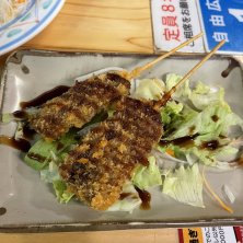 四軒目 ひろめ市場 やいろ亭 今回の目的、高知のカツオ!高知在住の人に聞いたオススメ店。 頂いたのはカツオの塩タタキ。弾力ある歯ざわり、カツオの風味、脂乗りがサイコーでした! あおさの天ぷら、ゴボ天、ウツボの唐揚げと共にカンパイ♪