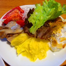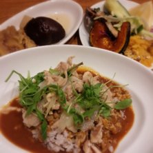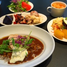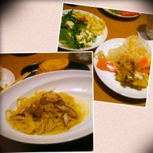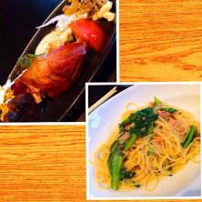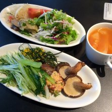 グランフロントの南館1階にあるレストランのランチ(●'w'●) サラダバーは、全部のランチに付いていてただのサラダでなく、みんな一手間かけたサラダでした( *´艸`)パスタは、タコミンチと春菊のオイルパスタです(≧▽≦)ゞ