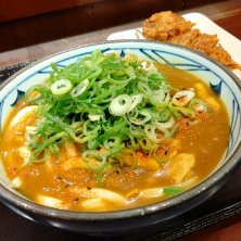 お昼ごはんは本当に久し振りに丸亀製麺へ来てみました。 職場近くの店舗は緊急事態宣言でずーーーっと閉めていたのです💦 よし!今日はカレーうどんだ🙌 土曜の昼間だしそんなに混まないかな?とふらっと寄りましたが、客席数を減らしてる関係ですぐ満席になってしまうようだ。 幸い僕は直ぐに入れて席にも着くことが出来たが… 10分遅かったら店内往復の列に並ぶ事になっていたようだ💦 「マークの所で間隔をもって並んでくださーい!」 「予め席を確保するのは辞めてくださーい💢」 と店員さんの声が響く