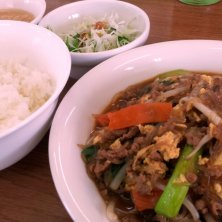 先日おそがけに行ったにも関わらず満席で入れなかった中華彩菜に来ました ここは夢のようなセットがあるんですよ メイン2品選べて、サラダ・スープ・ライス・点心・ドリンクで1,650円なんです 点心含めメインクラスが3品も付いてるなんて ご飯大好きにはたまらんセットです しかもワガママ言って、点心をここに来たら絶対食べたい汁なし担々麺に変えてもらってます 本場の担々麺って汁がないんですが、そんな感じに近いんですよね クセになってます
