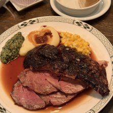 ずっと行ってみたかったロウリーズ。 プライムリブをロウリーカット(約300グラム)で頂きました。 HP見るとドレスコードが気になる感じですけどそこはLA発祥の店、そんなに気にしなくて良いです。 さて、肝心のお肉ですが残念ながら好みに合わず。脂肪の風味がイマイチ良くないのと、その風味にソースが負けてるのが原因かな。リブアイは自分には合わないのかも。 付け合せのマッシュポテト、スピナッチも美味しいけどベースが一緒なので飽きる感。 次は目標はウルフギャングだな…