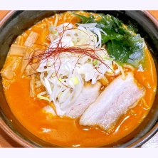 東京都と千葉県に数店舗有るラーメンの店、北海道らーめん ひむろの味噌オロチョンらーめん。数種類のスパイスと秘伝の味噌ダレを加えたピリ辛の味噌ラーメン。看板メニューの札幌味噌らーめんと並んで自分がこの店で好きなラーメンの1つ。