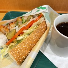 いまだに通っている経過観察恒例のサブウェイ朝ごはん。今日は生ハムマスカルポーネ野菜増しオリーブ添え。おいしいねぇ。