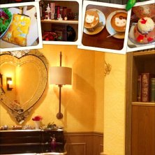 ✿Hello Kitty Cafe Restaurant *4種のチーズタルトフランベ *チョコムースアイス添え またキティーちゃんカフェ♬ 昨日誘ったけど行けなかった 先生に昨日の写真を見せたら 行きたい!ってなったので 今日また行ってきました!! 同僚と私はまさかの2連チャン! 昨日撮ってこなかった オシャレなレストルームと ダニエルくんラテ をUPしました♬ レストルームは個室の扉を 開けると大きな化粧台と本棚♬ あまりにステキで 何をしにきたのか忘れそう♬