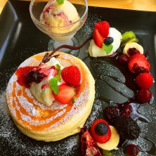 近所にある円山ぱんけーきへ! 土日は恐ろしいほど混雑するこのお店…… 行った時は平日の昼間なので、とても空いていました♡ 早速注文! 私は悪魔のパンケーキをオーダー♡ 届いたとき盛りつけの美しさに驚きました! カラフルで可愛過ぎる♡♡ パンケーキも分厚くて、外がカリッと、中がふわとろ……!フルーツもどれもみずみずしい! めちゃくちゃ美味しかった😋 全体的に大満足でした!が、一緒にオーダーした紅茶が先に来すぎてしまい、冷めてしまったのだけがとても残念でした( ´・ω・`)
