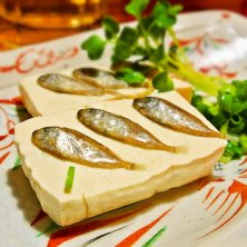 「スクガラス」です。 アイゴの稚魚を塩漬けにしたものを島豆腐にのせていただく沖縄料理の定番です。 この稚魚は唐揚げや酢漬けでも美味しいです。