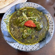 コリアンダーゴーシュト 1345円 サラダ、ナン、ドリンクつき。 Coriander Gosht とは 柔らかい骨付き肉を煮込んだ伝統的なカレー。南西アジアの様々な地方で愛されています。 ふんだんに使用されている新鮮なコリアンダーが良いアクセント という説明です パクチー感はほぼない 辛さもピリ辛程度 マトンは骨つきのも含めて4カット入り なかなかにおいしい が、デカすぎるくらいナンがでかい ほんとはニハリを食べるつもりだったが、オーダー時にめちゃくちゃ辛いよ?と言われてひるんでこっちにした