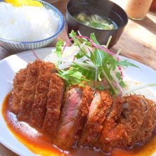 9時30ジャスト到着。早めにOpenなのか すぐ入れて貰えました♫ ビフカツは柔らかく、とても美味! 娘がちょうだいと、ほとんど食べてしまい 私の分が無くなる。 少し残ったオムライスは、お土産用にお持ち帰り‼︎