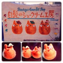 トトロのシュークリーム 可愛すぎですよね😆 宮崎駿監督の弟さんがやってるお店。 茶色の葉っぱ→マロン 緑色の葉っぱ→カスタード 黄色のリボン帽子→ストロベリー 青色のリボン帽子→チョコレート