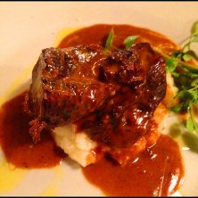 牛ほおにくの赤ワイン煮込み。 赤ワインが美味しい!