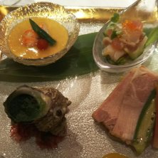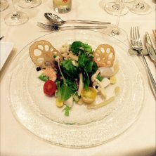 従兄弟の結婚式❀.(*´◡`*)❀. 天使の海老と帆立の秋野菜サラダから。 天使の海老かー♡ シャンパン美味しい!