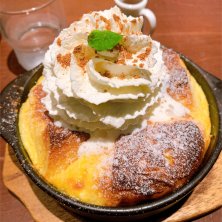 石釜焼きフレンチトースト! 全然甘くなくてびっくり! そしてふわっふわ!見た目のビジュアルが最高! 個人的にアパレイユが甘くてホイップじゃなくてアイスだったらもっとよかったな! シナモンがいいアクセントになってておいしい!