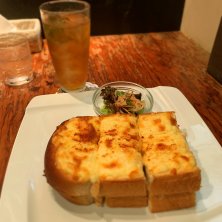 アーモンドトーストは3センチ位の厚さがありました。 インパクトは絶大なのですが、香ばしくて、甘すぎなくてペロッと食べられます。 添えてあるのはポテトチップス。 甘いのがお好きなら、シロップをかけるとケーキのようになります。 コーヒー ¥380 ローズヒップティー ¥400 アーモンドトースト ¥580 ホットケーキ ¥600 パスタ(ジェノベーゼ) ¥880 パスタ(明太子) ¥850 パスタは美味しいけど、このお店ならホットケーキやトーストを頂いた方が良いかと。