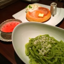 神保町の名店 さぼうるの並びにある、おしゃれなカフェ。 人気はホットケーキや、フレンチトーストとのことなのですが、パスタも美味しそうだったので、そちらも頂きました。 ジェノベーゼは生パスタのもっちりした食感と、バジルの風味が豊か。すぐ絡まったパスタが固まったのは✖︎。 ローズヒップの爽やかな酸味も、美味しかったです。 ホットケーキはふわふわしていて、たっぷり添えられた生クリームは甘くないけど、メイプルシロップをかけるとたちまち印象が変わって、ふわふわしっとり甘々な絶妙な三つ巴(笑)