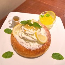神保町「TAM TAM」 いつも混んでで入れないけど、やっと入れた❗️ 人気のホットケーキの夏季限定 ◉レモン🍋ホットケーキ🥞 🌟レモンゼリー付き ふわふわの厚めホットケーキ🥞 レモンピール レモンスライス 生クリーム ヨーグルトアイス レモン🍋ジンジャー🫚ソースはお好みで。 ホットケーキのバターの塩味🧈 レモンのさわやかなお味がいい感じにマッチ❣️ トッピングのレモンははちみつ🍯漬けみたいで、そのまま食べれます。 かなりのボリュームです。 糖分補給したい時に❗️