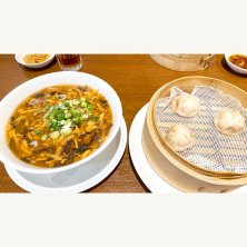 蟹入り小龍包と蒸し鶏麺です。 小龍包はスタンダード、蟹入り、ウニ入り、ホタテ入り、カニ味噌入りがあります。 どれも味わい深いです。 蒸し鶏麺はあっさりなのにコクのある味でまた食べてみたいです。