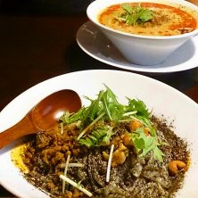 汁あり痺れる担々麺 汁なし痺れない黒担々麺 更にラー油をかけてもまた美味しい。
