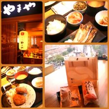 今日の朝昼 兼用~ごはん ◎ほぼ明太子定食 仕事のついでに、オットと合流ランチ。 1度来てみたかった明太子の「やまや」さんのお店。 お目当ては、ランチタイムにサービスされる新鮮ウマウマな明太子。 メインの定食を頼むと、明太子と、高菜漬けとご飯が食べ放題♡ ご飯をしっかりたべたかったので、私は焼き魚カマス。 オットは、限定メンチカツ~ゆず胡椒定。 明太子は中が綺麗なピンク色✨しっとり、ぷちぷちしていて、美味しい(^^~生タラコのよう♪ スーパーの明太子のあの色は何なんだろ…