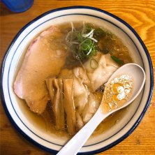 肉わんたんシャモそば 今日はワンタン入りにしてみた〜(*゚▽゚*) 生姜が効いた肉わんたん美味しい〜!‼️