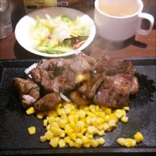 300gのステーキランチにはスープとサラダとライスがついて1200円だったかな?私は自信なかったからお肉のみ注文しました。頑張ったけど半分くらい残してお持ち帰り…柔らかくて美味しかったです♪