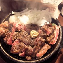 ナルオリブロースステーキ300g 気になっていた店だったので初トライしてみました。7円/1gなので¥2100。 レアで食べたのですが肉質は柔らかくて良かったですよ。他にも5.5円、8円、10円の肉がありました。 あっという間に300g食べてしまいました(^-^)