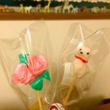 あめ細工屋さんですよ イベントで細工士さんがお出かけして無ければいつでも注文すれば 目の前で作ってくれます 基本キャラのあめぴょんだっけかな? 色々カスタマイズ出来るので 見てて楽しい プレゼントなんで 味はわかりませぬ 見てるだけで楽しいので おすすめ