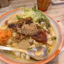 和ニックカレーとパクチースープ🍛 お久しぶりに伺ったケニックカレー、あいにくの天気の影響かゆったりのんびり営業でした✋ 今回頂いたのは久しぶりに登場したという濃厚な京豆腐とねぎ塩タレとパクチーがついたスペシャル版、みっちり食感のキーマは相変わらずの美味しさです👌 いつも通り花椒やタバスコで味変した後にSNS限定のパクチースープをかけてサラリとお茶漬け感覚で〆ました😊