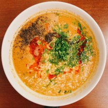 「中国料理翠・アルカディア市ヶ谷・私学会館@九段北四丁目」で「担々麺」990円也。なんと1年1ヶ月と2日振り。前回「まぁまぁ」だったので存在を忘れていた。何にするか悩んだが「担々麺」で。厨房のメンバーが変わったのか、初めて食う味。スープは「辣油」「花椒」「芝麻醤」がキッチリ主張しており、「麻・辣・甜」が際立っている。「香菜」は彩り程度か。「細麺」との絡みは良い。改めて「美味しい!」と感じた。「挽肉」が少ないのが残念。近々また来ます。そう言えばココ数年、値上げをしていないのに驚いた。ごちそうさま。