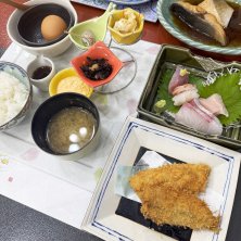 先月余初訪問以来お気に入りのお店になった鎌倉の『叶夢かむ』へ、お刺身、アジフライ、卵かけご飯、天ぷら、煮魚、焼き魚、有田焼プリン、全部うまいよね。今日はお刺身とアジフライを。