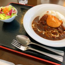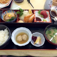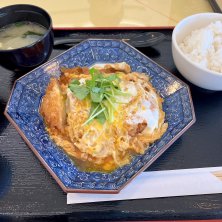 今日のランチ! ゴルフコンペに参加しています。 カツ煮定食