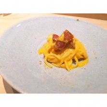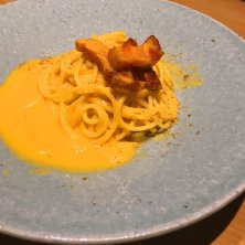コースのは別で 〆を頼んでしまいました♡ 8時間煮込んだ鶏ガラスープのラーメンも食べたかったけど、、、 店主が本気で作ったカルボナーラ♡ 美味しすぎました♡ でも、作り方を当ててしまった笑 なんで、わかったんだー!って言われたけど、 わかっても作れないです笑