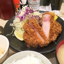 横浜線止まったのでブルーラインに初乗車🚞💨 せっかく日吉降りたのでご飯はこれ💡 特上ロースカツ定食2000円 3種の岩塩とかも置いてあってこだわってそう 分厚くて良い脂でした!