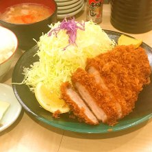 ロースカツ定食。味噌汁が豚汁なので豚と豚が被っちゃったテヘッ♪ しかしこれで1000円は安いなー。満足!!