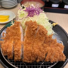 ボリューム満点の美味しいロースカツ定食に出会いました!ライス、豚汁、沢庵付きで1,000円(税込)。お腹いっぱい😋