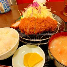 ロースカツ定食1,000円。林SPFポークのレアとんかつ。脂身が少ない分、コスパ的には一番この子のメニューがオススメかも。