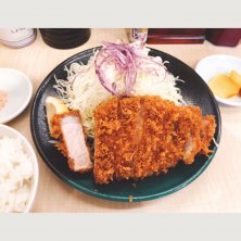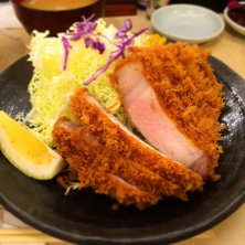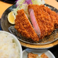 リブロースカツ定食 蒲田の檍の人気メニューだそう。SPF豚のレアです。