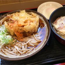 かき揚げ丼・ごまおろしそばセット! 普通の立ち食いそば屋とは違うこだわりを感じました