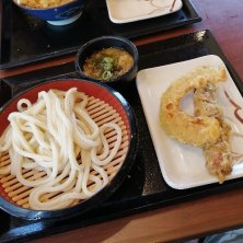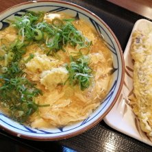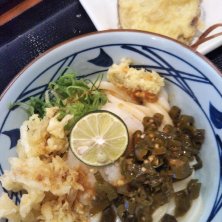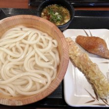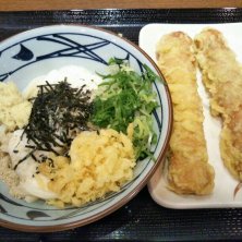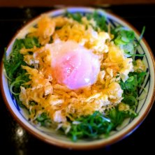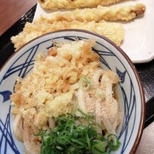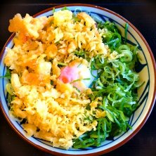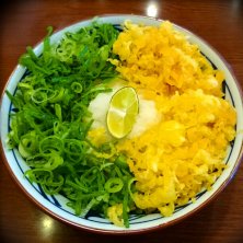 冷たいおろし醤油うどんの並にねぎと天かすをトッピング。