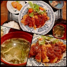 1/7日(火) 行きつけのお店douzeへ🚙💨 七草粥頂いてから デミソースの豚カツ🐷 出来ないと言いつつ 生姜焼き用の薄い肉で作ってくださったぁ。 流石よね👏😊💕 美味しかったっす😋 満足致しました( ¯﹀¯ ) ご馳走様でした( ´ ▽ ` )ノ #douze #七草粥 #豚カツ #美味しく頂きました