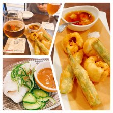 合同誕生日会🎂ハシゴ酒🪜🍺① 私の誕生日当日に実家に帰省するので、前日前倒しでお祝い🤗まずは、私が久しぶりに行きたかったお店へ。 こちらへよくいらっしゃるmill友さんが季節のおつまみ投稿されていて、気になってた。 何と‼︎今旬は鱧料理が2種類ラインナップ😋 大阪のmill友さんの鱧天ぷら見たばかりだから、テンション上がる⤴️オット👨も珍しいからと鱧とオクラのフリットと鱧の湯引き梅肉ソースの両方をオーダー。 ビールは👩青のラガー👨常陸野ネストだいだいビール🍊↓