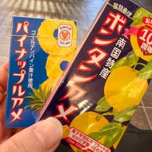 ミニチュアボンタンアメがたまらなく可愛い😍 このオマケが欲しくて買ったボンタンアメ袋(8粒入が5箱入ってる)ミニチュアボンタンアメには2粒入り✌️ 実は前にもこれ買ったのにどこかに置いてきちゃって悔しいわ悲しいわでまた日比谷行ったら買う!って決めてたやつ。だから満足😆 パイナップルアメは沖縄行ったときすんごい食べたの。むしゃむしゃとスナック菓子のように食べてしまうから怖いお菓子😅