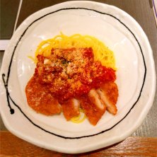 『ロース豚カツとトマト風味の軽めのミートソーススパゲティ』 "軽め" とは・・・?