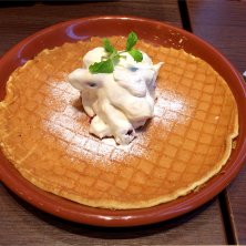 KITTEの横、東京ロビーで食べたパンケーキ。プレーンではなく、リンゴの方です。 シロップとアイスをのせてパクり。美味しいけど、熱いんだか冷たいんだか、甘いんだか酸っぱいんだか・・・。美味しいのは間違いないのですが。 (〃^ー^〃)