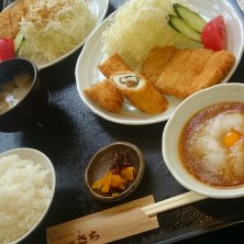 こんばんは。 お昼に食べたロースカツランチ… 漬けダレで食べるトンカツ… 醤油ベースのタレに大根おろし+うずら卵… カツもサクサクだし特製漬けタレも美味しい。添えつけの特製ソースも美味しかったです。 でも…コロナ対策、一応やって欲しいですね。店の真ん中に大きいテーブルがドンと置いてありお一人様はみんなそこに案内されて知らない人と向かい合わせで食べる… 自分、拒否しました^^;怪訝な顔されて、支払いの時だけバカ丁寧に頭下げられて、いくら美味しくてもリピはありません(*_*)