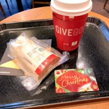 スタバで朝ごはん❤️ スタバカードのクリスマスバージョン🎄ゲット! これでまたコーヒーが108円でお代わりできる(≧∇≦)