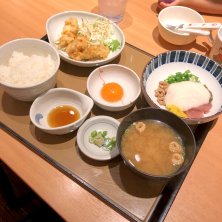 とり天とネバネバごはんの定食 ネバネバごはん気に入ったから自分でも作ろうっと。わたしはごはんを息子と半分こでちょうど良かった。黄身だけごはんを食べた後、ネバネバごはん。 もう何年かぶりに来たけど、お買い物と公園の後にサッと食べられて助かる。 平日の仕事と家事と育児があるのだから、土日は私だって休みたいもんね〜…。