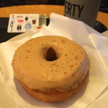 外側のメイプルコーティングも、内側のメイプルクリームも美味しい♬ コーティングにトッピングされたシュガーの食感もまたいい♡ ☆*:.。. o(≧▽≦)o .。.:*☆
