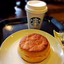 食べたかったバターミルクビスケットとコーヒークリームラテ♡ ビスケットしっとりしてて美味しい!! ラテも甘すぎなくてイイネ♬ゆーこちゃん♡ 今日は土曜日だから混んでるな〜(๑˘ ³˘๑)•*¨*•.¸¸♪