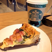 スターバックスではドリンクしか買わないけど、今朝は気まぐれでこの『ベーコンとほうれん草のキッシュ』を買って食べてみたら、これ美味しいねぇ😋 思わず食べ終わってすぐもう一つ買ってしまいました。これ二つ目です🤣
