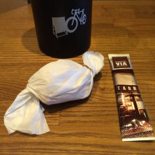 コーヒーおかわりに行ったら、 ハッピーハロウィン・フェアやってて あたり♡ ゲット!ヾ(*´∀`*)ノ パイクプレイスのVIAと、スコーン頂き♬ ☆*:.。. o(≧▽≦)o .。.:*☆